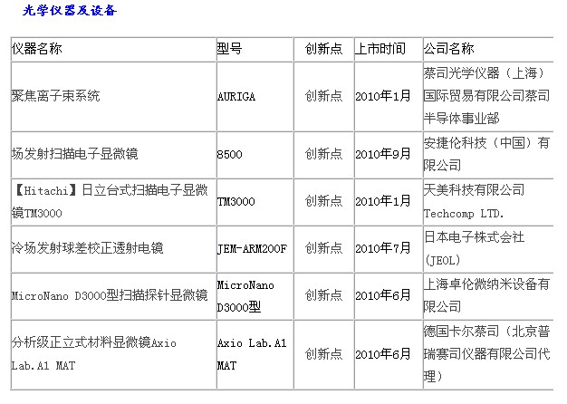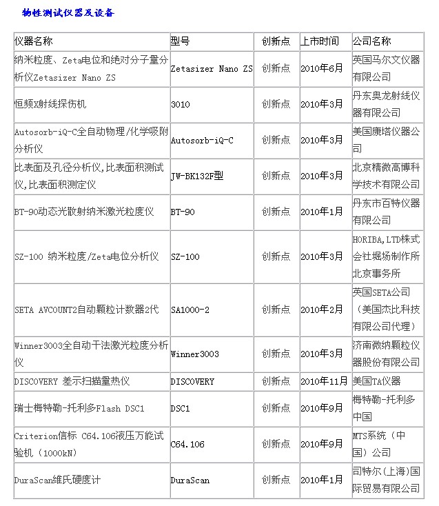 2010科學(xué)儀器優(yōu)秀新品入圍名單:物性測(cè)試儀器、光學(xué)儀器