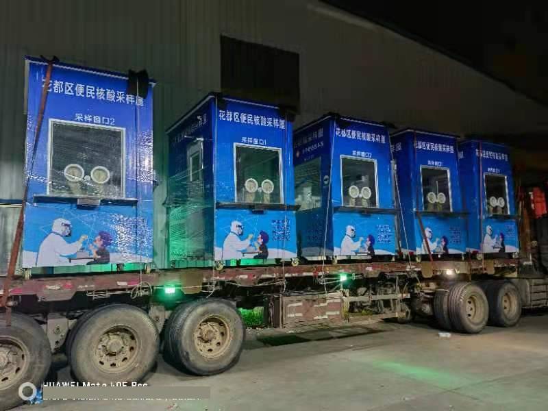 5月23日,花都區(qū)添置第一批5個專用核酸采樣屋,分別放置在來又來商場、新世紀廣場、融創(chuàng)樂園、雅樂城廣場、花東市場,當天下午3時正式投入使用,受到市民群眾的熱烈歡迎,這也是 廣州市第一批專用核酸采樣亭。